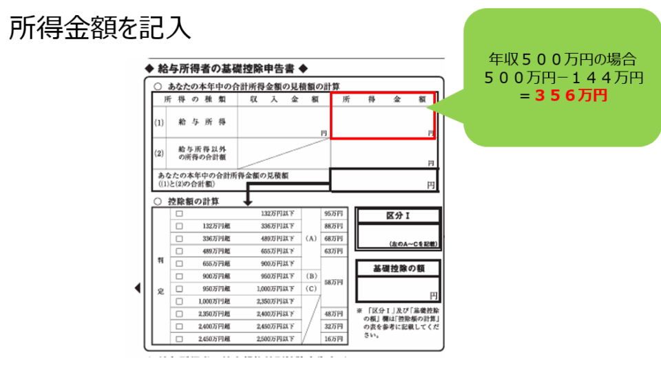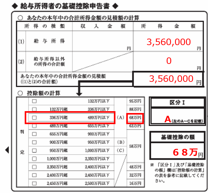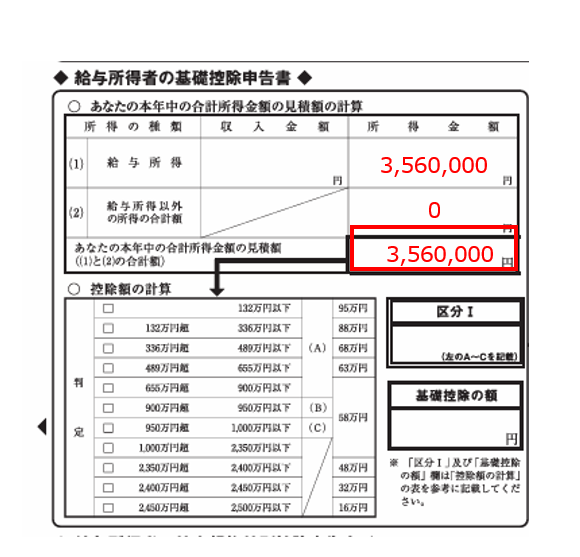 まず最初に給与所得者の基礎控除申告書の書き方から
