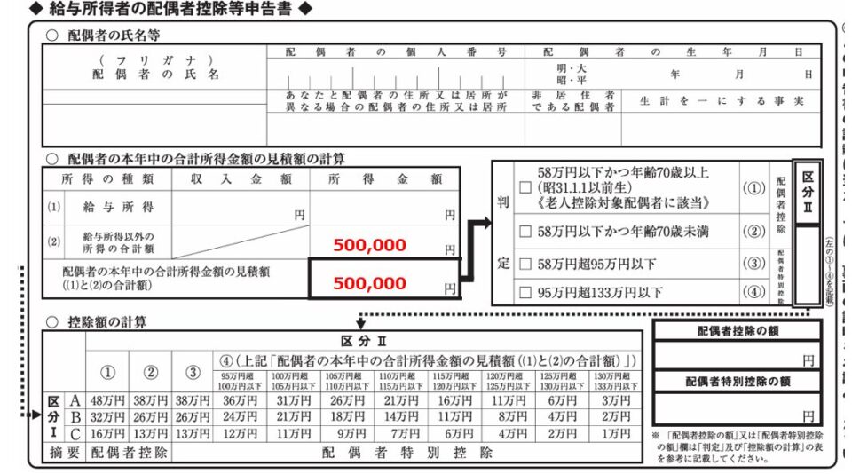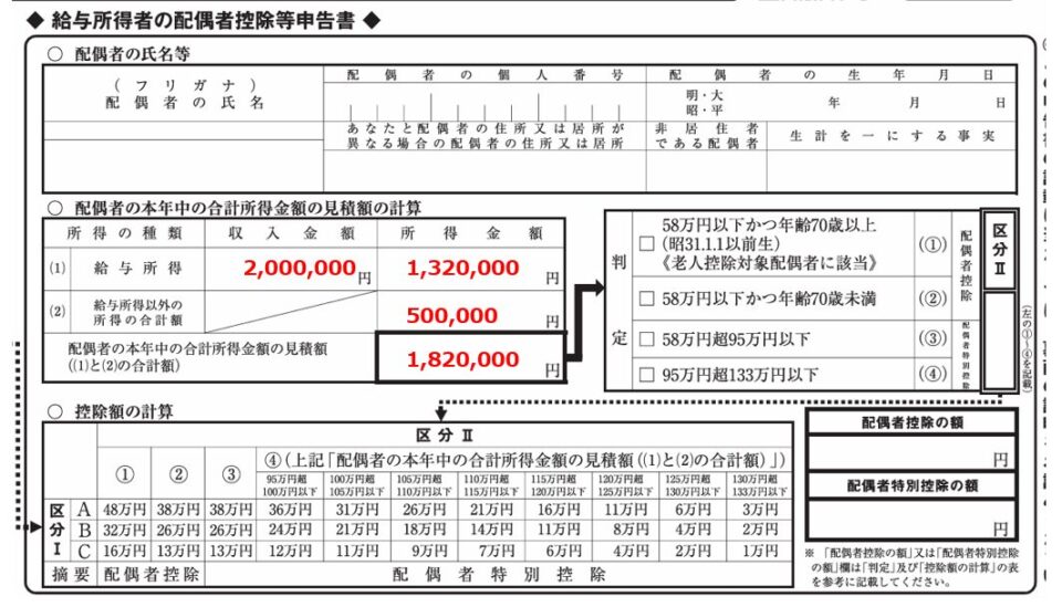 そして、(1)給与所得と(2)給与以外の所得の合計額の所得金額の合計額を記入します。