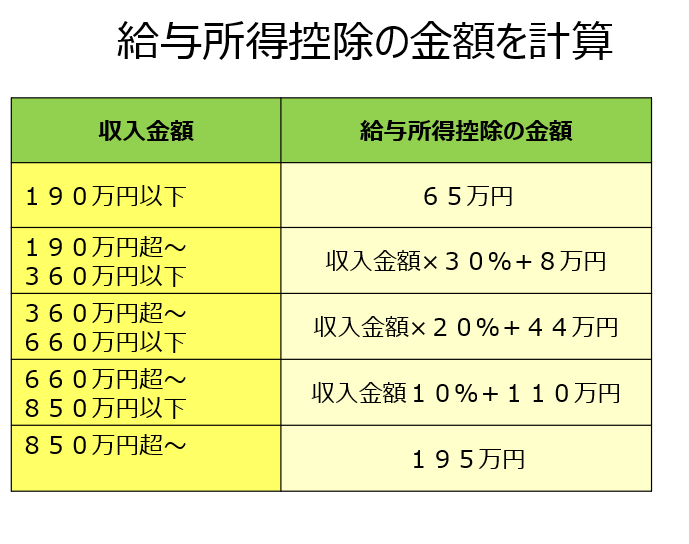 所得は、先ほどの給与所得控除の計算と同じ計算方法で計算します。
