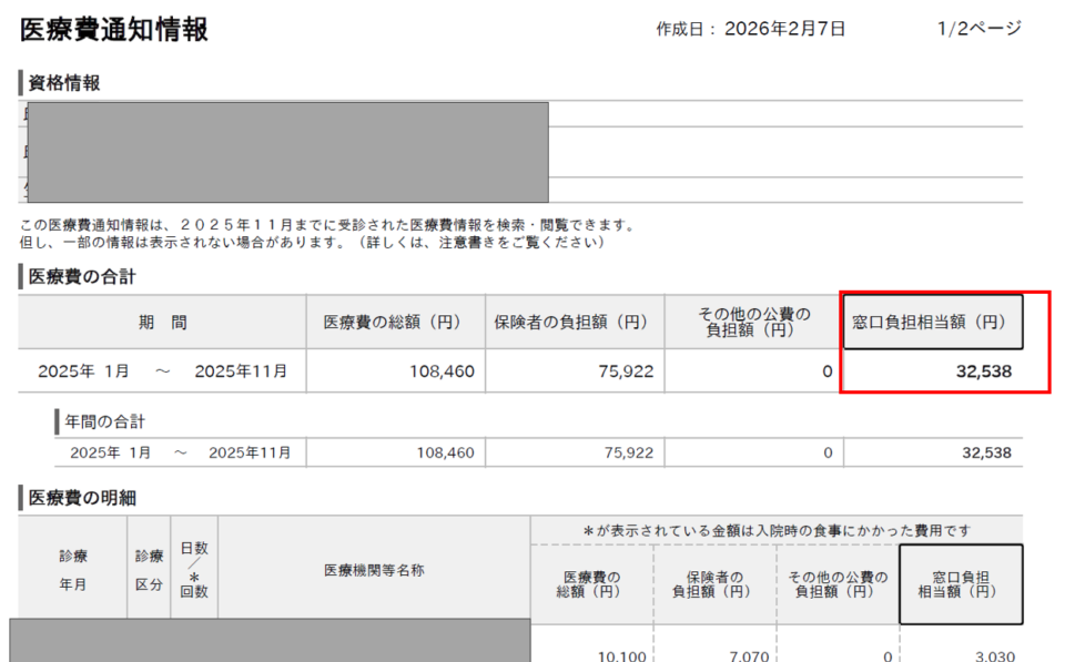 一年間の医療費が集計できるようになります。