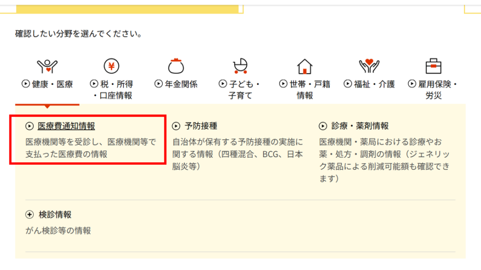 医療費通知情報をクリック