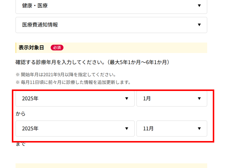 医療費の集計をしたい期間を入力