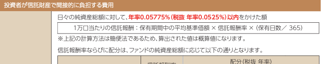 これは、投資信託を持っている間に毎日少しずつかかる管理費用です。