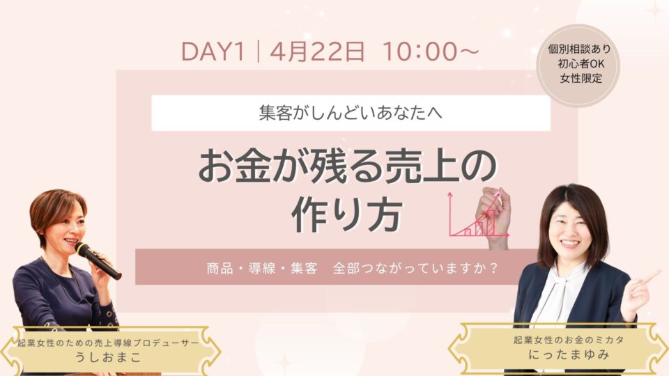 この講座では、 売上を増やしながら、漏れているお金を止める という経営者視点を身につけます。