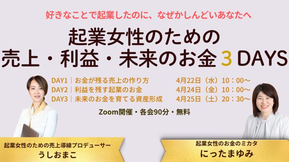 売上・利益・未来のお金を3日間でまるっと整えるスペシャルコラボ講座をご用意しました。